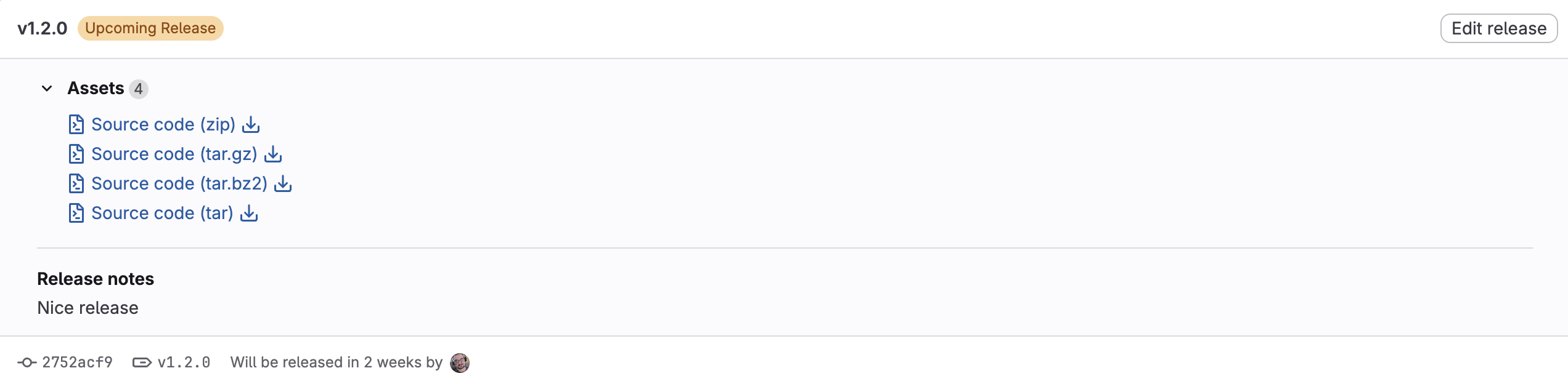 Create a release to package your project at critical milestones. Releases combine code, binaries, documentation, and release notes into a complete snapshot of your project. When a release is created, GitLab automatically tags your code, archives a snapshot, and generates audit-ready evidence. This creates a permanent record that's perfect for compliance requirements and can give your users confidence in your development process.